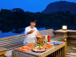 🌄 In the evening, don't miss the riverside view with the mountains in the background. 🍴 Order a shabu set to savor the flavors while enjoying the nighttime ambiance—it's truly heartwarming.