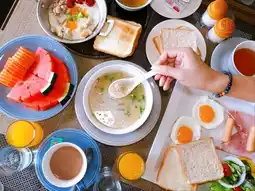 🏊 Plus, there's a swimming pool available for use all day, from morning to evening. Additionally, there's a large lawn for activities, a restaurant, and a café ready to serve delicious meals and beverages to complete your experience.