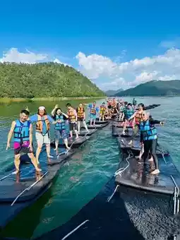 Activities: In the morning, we went for a walk/run along the dam crest. We stopped for coffee at Khun Sai Chon's coffee shop on the dam crest. Later in the morning, we chartered a raft to swim in the reservoir. We had lunch and dinner before returning home to relax.