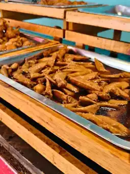 🍜 When it comes to chicken noodles in Kanchanaburi, the first name that comes to mind is probably "Jay Kaew Buffet Chicken Noodles." This isn't your ordinary noodle shop; it's a chicken lover's paradise, offering all-you-can-eat options! The highlight is its rich, aromatic broth, simmered with chicken bones and herbs for a deep, rich flavor. The chicken is tender and melts in your mouth, including the drumsticks and wings, boiled to perfection. The chicken gizzards, including blood and feet, are stewed until tender, not too mushy. There's also a wide selection of noodles, including thin noodles, wide noodles, rice vermicelli, and instant noodles. And most importantly, you can add your own toppings, including meatballs, offal, and a variety of fresh vegetables to enhance your bowl of noodles.