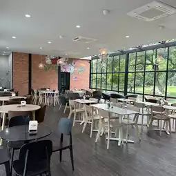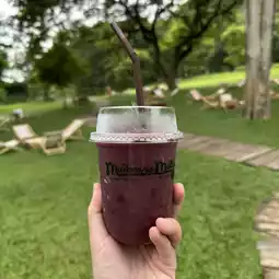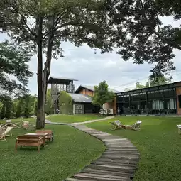 📍Mulberry Melo is located in Mueang District, Kanchanaburi Province. The shop's distinctive feature is its spacious lawn area, surrounded by tall trees. It also offers beach-style seating and relaxing seating under the trees on the lawn. The spacious area creates a relaxing atmosphere, but you'll have to endure the heat if you sit outside. Alternatively, you can sit inside in the air-conditioned area.