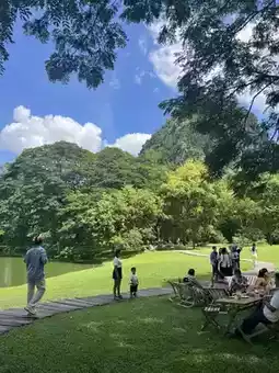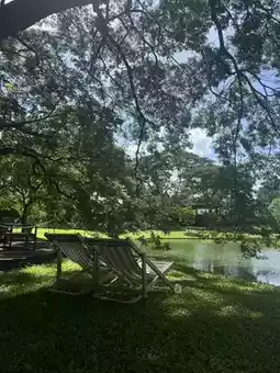 🌳If you're looking for a place to rest your mind during your Kanchanaburi trip, Mulberry Mellow, a small cafe, is a must-visit. This cozy, minimalist cafe sits on the banks of the River Kwai. The atmosphere is peaceful, surrounded by trees and the aroma of fragrant coffee.
