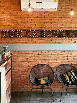 ..This place is both an accommodation and a cafe, perfect for taking photos in a camper-style atmosphere. Located right on the Kwai Noi River, it offers a stunning river view. It's only 20 minutes from the city center, but don't worry about the inconvenience of camping. This place has it all: a cafe, restaurant, swimming pool, clean and new bathrooms, and even a BBQ set for a relaxing evening by the Kwai Noi River. 🍢