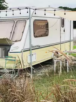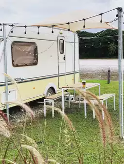As mentioned, the owner loves camping in their motorhome. Those who want to park their own motorhome can access The Campster, which provides water and electricity. If you don't have a motorhome but want to experience the camper life, they also have motorhomes available. If you'd like to sleep in a tent, they have cute, brand-new tents with private bathrooms. 🚌