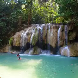 Then, I drove to Erawan Waterfall, a highlight of my visit to Kanchanaburi. This waterfall has seven levels, each with its own unique beauty. The water is so clear you can see fish swimming beneath. At times, the water is a refreshing emerald-blue hue. I spent most of the day here, hiking along the nature trails, listening to the sounds of the waterfall and the birds. It truly felt like I'd entered another world, a world of peace and nature.