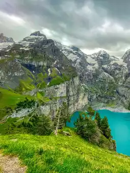 Tucked deep in the Swiss Alps, there’s a lake so blue it looks unreal — welcome to Oeschinen Lake. A place where time slows down, and the mountains whisper in silence. Add this to your bucket list before the crowds do.”