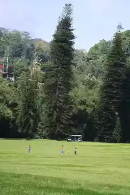 The Royal Botanical Gardens in Kandy, Sri Lanka, is a dreamlike sanctuary filled with white houses, towering trees, and palm trees that have thrived here for many years.