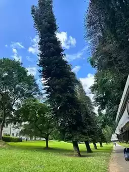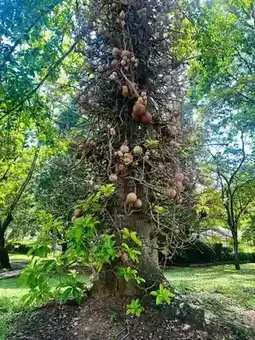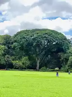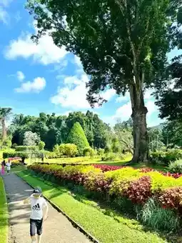The Royal Botanic Gardens in Kandy, Sri Lanka, is a vast and enjoyable place to explore. For just 2000 Sri Lankan Rupees, you can rent a small vehicle to tour the park. One of the highlights is the trees filled with bats, as shown in one of the pictures.