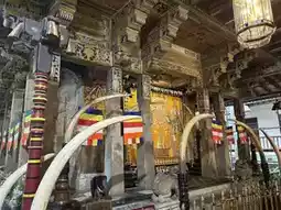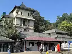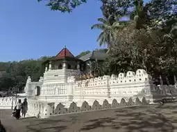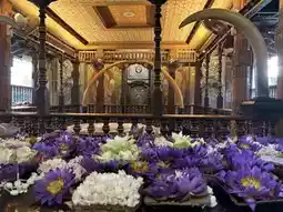 The Temple of the Tooth, initially built in 1595, is a famous Buddhist temple in Sri Lanka. It houses Sri Lanka's most important Buddhist relic - the tooth relic of the Buddha, making Kandy a sacred place for Buddhists around the world. The Temple of the Tooth stands quietly by Kandy Lake, resembling a white lotus floating on the water from afar. The temple's interior is not large, split into two levels with interconnected halls and a complex structure. The core is the inner chamber on the second floor, where the national treasure, the Buddha's tooth, is enshrined. The tooth is kept in a seven-tiered golden stupa within a dark chamber, which opens around 6:30 pm every evening. Believers from all over the world flock here, holding various flowers and with sincere hearts, lining up to admire the sacred tooth relic.