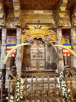 The Sacred Chamber: The golden casket containing the tooth relic, hidden behind carved ivory and silver doors, radiates an aura of profound peace