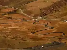 The valley to the east had wide expanse of orange grassland, with patches of yellow, red, brown and green vegetation at the bottom of the valley, with belts of roads and rivers. These rolling mountains were mainly of red and brown.