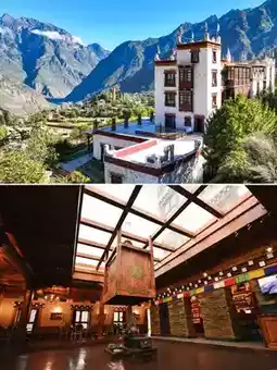 Nestled under snow-capped mountains and within Tibetan villages, with private hot springs