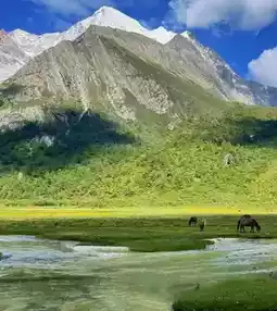 ▫️Lorong Pasture is straight out of a fairy tale! Wildflowers carpet the ground in yellow and purple, the Gongga River meanders through meadows, yaks swish their tails through cloud shadows, and horseback rides on wooden paths feel like stepping into *Heidi and Grandpa*.