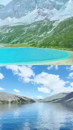 格聂之眼 (Eye of 格聂): In summer, the lake is full, surrounded by snow-capped mountains, with a ring of crimson water plants along the shore, resembling the eye of the earth.