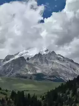 格聂 Sacred Mountain: At an altitude of 6,204 meters, the snow-capped peaks pierce the clouds, radiating a holy brilliance under the sunlight—so stunning it leaves you speechless.