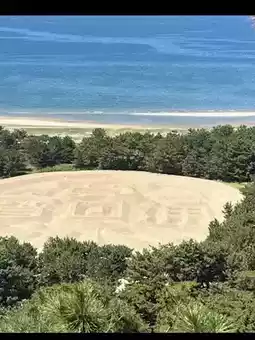 This sand painting, modeled after the Edo-period Kan'ei Tsūhō coin, is a whopping 122 meters long! Looking down from the observation deck, its sheer power is breathtaking. 😲✨
