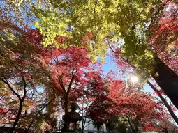 During our visit, the maple leaves had turned vibrant red while golden ginkgo leaves added a warm contrast. The view was breathtaking, especially as the sun filtered through the colorful canopy.