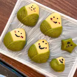 At the beginning, the teacher handed out two different colors of dough, original and matcha flavors. The green part was to be wrapped into the shape of rice dumplings leaves. After pressing out the patterns, fill them with sweet pineapple filling and finally draw expressions on them with cocoa powder. The cute little rice dumplings are ready!
