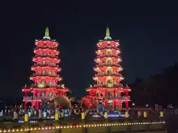 At night, the Dragon and Tiger Towers are lit up, making their red color vivid, and combined with the beautiful scenery of the lake and water, many tourists visit them at night.