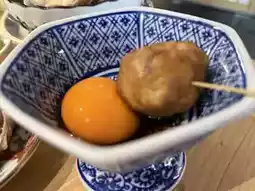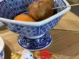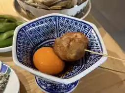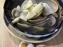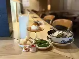 Tonight, I went to the izakaya (Yunjiu) near the Kaohsiung Light Rail (Glory Pier) Station for dinner. Creative snacks. Highly recommended. It's located in a small alley, very elegant, simple, and clean. The staff are very young and cute, with friendly smiles that made me feel at home. I ordered a cup of Calpis, then (Chicken and Vegetable Roll), (Moon Meatball), (Fish and Yam), (Mentaiko Yam), (Assorted Dumplings), (Sake Steamed Clams), (Miso Fish Soup), and (Fried Fruit Corn). The taste was amazing. Bite after bite, it was so delicious. Highly recommended.