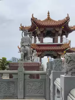 5-story-tall golden God of Wealth (at Wulu Cai Shen Temple) overlooks the water, appearing to "float" when reflected at sunset. It’s a prime spot for prosperity selfies! 💰📸