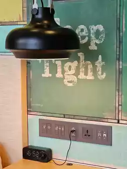 The hotel features spacious bathrooms and well-maintained room conditions. Next to the hotel bed, you'll find convenient lighting controls and curtain remotes, as well as USB ports for charging your phone without needing an adapter. The staff are friendly, and the views are great, making it an ideal place to stay.