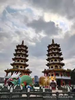 Aunt Aom complained... Dragon and Tiger Pagodas - Chiji Temple This temple can be reached by taking the KMRT and getting off at HRS Zuoying Station or by taking the TRA and getting off at Zuoying Station. When I came, I took the TRA and walked for about 20 minutes. When I arrived, wow, it was so impressive. I saw the twin pagodas standing tall behind them. When I got closer, I saw a tiger and a dragon standing together. On the opposite side is the Chiji Temple, which is just as beautiful. Whether it's the sacred objects, the stucco sculptures, the ceiling, or the walls, it's all magnificent. I recommend coming here. Next time I have a chance, I'll come to see the night view. The light should be really beautiful. #GetDiscountsWithoutFate #Kaohsiung #DontMiss #Taiwantrip #KhaoYaiTravel #Zuoying