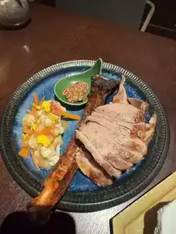 The Tomahawk Pork Chop was a feast for both the eyes and the palate, featuring a thick cut that was crispy on the outside, tender and juicy on the inside, with a smoky aroma and generous portion size. The Scallop Kamameshi was my personal favorite of the evening, with plump, sweet scallops paired with perfectly cooked rice infused with the fragrance of broth, delivering layers of flavor in every bite. The steak was cooked to perfection, tender and juicy, and complemented beautifully by the house-made sauce. The sushi leaned towards a refined style, with each piece showcasing exceptional freshness, especially the seared varieties, which were incredibly aromatic. The most impressive dish was their signature seasonal appetizer crafted by the chef—this time, it was a sea urchin and yam mousse, which was creamy, smooth, and perfectly balanced in savory flavors, truly a masterpiece.