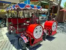There are bicycles and electric bicycles, cute and available for rent. There are many shops.
