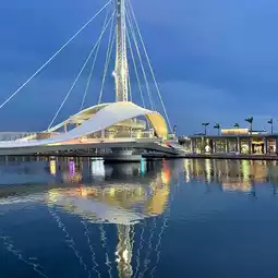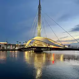 #大坂世博 The Dagang Bridge, which was only opened in July 2020, is located at the end of Dayi Road in Yancheng District, at the third ship channel of Kaohsiung Port. The all-white bridge body is inspired by shells and dolphins, and looks like a large sailing ship across the Kaohsiung estuary. The first horizontal rotating bridge in Taiwan, the Dagang Bridge, is also the longest cross-harbor rotating bridge in Asia. It can complete horizontal operation within 3 minutes. The Dagang Bridge rotates and opens and closes at 3 pm every day. Combined with the Kaohsiung Waterfront Light Rail, it connects the Pier-2 Art Center and the Kaohsiung Warehouse Group to shape the Kaohsiung Port Waterfront Sightseeing Corridor.