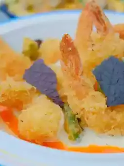 The whole prawn is wrapped in a crispy coat, paired with pineapple jam and chocolate powder, reinterpreting the traditional pineapple prawn ball, with a richer and more layered taste!