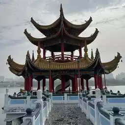 Cross the bridge that connects to the Spring and Autumn Pavilion to arrive