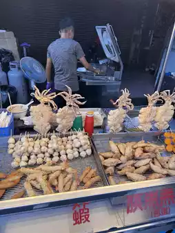 There are local snack shops lined up in the alleys in front of the temple or near the ferry dock. Just looking at these snacks will make your mouth water! • Grilled Squid: Sweet and salty seasoned, perfect for a bite before a walk along the beach. • King Prawn Tempura: Plump shrimps in crispy batter!