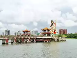Liánchí Tan is an artificial lake located on the eastern side of Zuoying District in Kaohsiung. Opened in 1951, it's famous for its beautiful lotus flowers and numerous temples surrounding the lake, including the Spring and Autumn Pavilion (春秋閣), the Dragon and Tiger Pagoda (龍虎塔), and the Confucius Temple (孔廟).