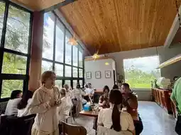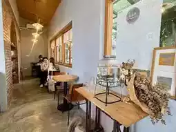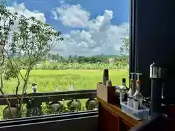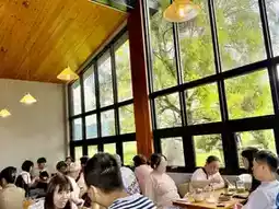 Today we drove to Meinong for afternoon tea. Nongtian, the most popular afternoon tea dessert shop in Meinong, Kaohsiung, is incredibly delicious and highly recommended. Located on a small country road, there's a luxurious guesthouse in front. Entering the house is a green space with a red-brick courtyard. Nongtian Dessert Shop doesn't take reservations. The high ceilings and large windows on two walls offer a breathtaking view of lush green rice paddies and a blue sky. The cakes are freshly made, and there's a wide variety. We ordered (Black Tea Chiffon Cake) and (Sesame Chiffon Cake) along with two iced lattes. It was a very relaxing afternoon tea. The setting is wonderful, and the desserts are delicious. Highly recommended.