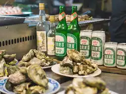 Snacks like pork belly skewers and gonggal bread are delicious 👍