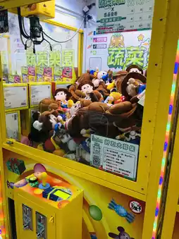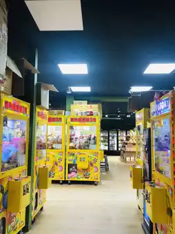 Exiting the Kaohsiung Arena MRT station, across from Ruifeng Night Market, there's a striking claw machine shop. This spacious shop boasts a large selection of machines and a dazzling array of items.