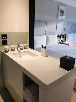 The lobby is immediately impressive. The high ceilings create a spacious and bright space. ๐ The overall decor is even more modern and stylish than expected. After checking in and entering the room, we were pleasantly surprised to find it even larger than expected! The two beds were perfectly sized and comfortable, ensuring a good night's sleep. โค๏ธโค๏ธโค๏ธ