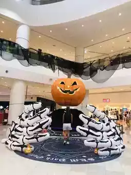Kaohsiung's SKM Park Mall has been decked out in vibrant Halloween ๐ style! The most eye-catching feature is the massive pumpkin installation towering in the atrium. Its impressive scale instantly becomes the center of attention. The intricately carved pumpkin features a playful and fitting expression, creating a festive atmosphere from every angle.