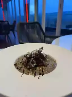 We ordered three dishes: creamy wild mushroom pasta, black truffle and porcini risotto, or a carpaccio appetizer (depending on the menu), and truffle fries. The pasta had a springy texture, and the sauce was light yet fragrant. The carpaccio appetizer featured balsamic and baby sprouts, the acidity brightening the fat. The truffle fries had photogenic, sharp corners, and a sprinkle of Parmesan for a crispy texture. This table wasn't overly ostentatious, but perfectly captured the rhythm of "viewing the view + chatting."