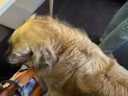 The shop dog is calm and adorable