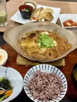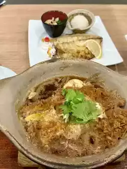 Today, Monday, I went to Hanshin Department Store's Chenggong branch for lunch alone. Hanshin Department Store B3 (Ootoya): I ordered (Scrambled Egg Pork Cutlet Hot Pot Set Meal, Grilled Yellow Pomfret, Kimchi, Special Warabi Mochi Dessert, and Iced Tea Latte). Even eating alone is a good experience. The staff were friendly, young, handsome, and cute. They made it easy for me to enjoy the food even while dining alone. It's a great restaurant, with genuine ingredients, very healthy, and low in oil and salt. Highly recommended.