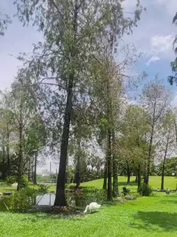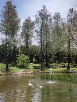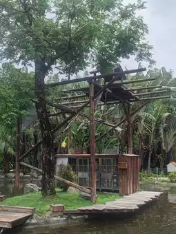 Jingyuan Farm is also a mini zoo where you can get up close and personal with a variety of adorable animals. The farm features popular species such as capybaras, alpacas (grass mud horses), flamingos, raccoons, sika deer, and Valais blacknose sheep. Visitors can purchase feed and experience the fun of feeding them themselves, a particularly popular attraction for children. The park's landscape is inspired by Balinese Nanyang style, creating a tropical resort atmosphere. The Bald Cypress Picnic Area features a beautiful tented picnic area and comfortable beanbags, surrounded by lush bald cypress trees. Enjoy a relaxing picnic during the day and the tranquility under the twinkling lights at night, making it a popular Instagram-worthy spot. The family play area features a large sandpit, slides, swings, and other amenities, allowing children to let off steam while parents relax in the adjacent rest area.