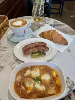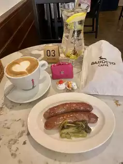 Today I went for a stroll through the Kaohsiung Cultural Center, exploring the nearby alleys for a brunch spot. I found a croissant shop (Bassotto Caffè), owned by two Italians. Brunch is served on the second floor. I ordered a rich breakfast (grilled Italian sausage, lasagna with beef, pistachio croissant, coffee latte, and elderflower sparkling drink). The pistachio croissant had a delicious aroma and texture. The sausage had a subtle vanilla flavor and was delicious. The spaghetti bolognese was delicious. I couldn't stop eating. I ate a double portion. The staff was young, friendly, and enthusiastic. It's a great brunch spot and I highly recommend it.