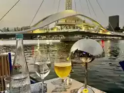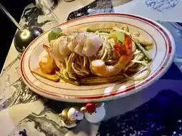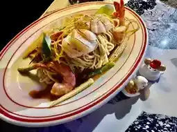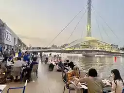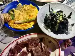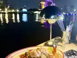 I've been living in Kaohsiung for 11 months. My favorite restaurant, and the one with the most beautiful views in my mind, is Yongxin Floating Island. Kaohsiung has the most beautiful scenery. Sitting outside the restaurant on the banks of the Love River, under the Dagang Bridge, enjoying the view and delicious food, it's a happy time. Tonight, I invited Xiao Luo, who works in Kaohsiung from Tamsui, to dinner at Yongxin Floating Island. The beautiful scenery made him very happy. I'm a meat-only person, so I ordered a charcoal-grilled rib-eye steak. He ordered seafood sesame noodles, traditional fried spareribs, oyster omelet, and carbon-powder fried whitebait. We were in a good mood, both guests and hosts had a great time, and the meal was a delight. The young waiter was friendly and enthusiastic, and he explained the dishes to him in detail, which made Xiao Luo feel the warmth of Kaohsiung. It's a great restaurant worth recommending.