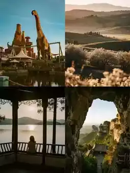 The Yadan landforms of the World Devil City show amazing charm in autumn, with wind-eroded rock pillars glowing golden-red under the sunset, forming an alien landscape together with the saxaul forests on the Gobi Desert. The autumn colors of Hei You Mountain are distinctive, where oil springs formed by crude oil seepage create a striking contrast with the golden reeds.