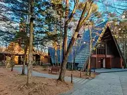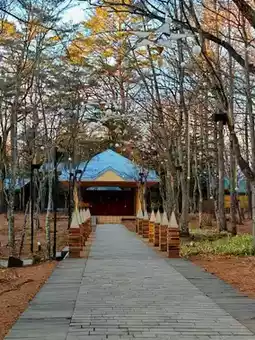 Karuizawa Kogen Church is located in the woods next to Hotel Bleston Court. The huge triangular roof extends all the way to the ground, like a magical cottage from a fairy tale. The simple and elegant wooden structure exudes a warm atmosphere. As the door slowly opens, the strong church atmosphere can be felt immediately. The structure of Karuizawa Kogen Church is made entirely of wood, which is simple and gentle, making people feel like they have entered a forest cabin in a fairy tale, and find their most innocent self. The predecessor of Karuizawa Kogen Church was the Hoshino School, built in 1921, so the words "Hoshino School" can still be seen on the door of the church. The faint fragrance of the wooden building, the soft sunlight shining on the marble road through the front window, and the gentle harp music in the ears, all make people feel happy even when there is no one around.