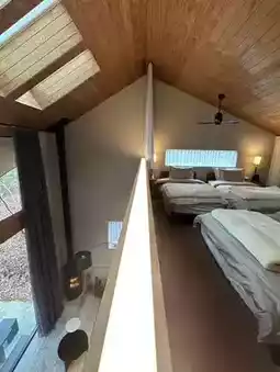It's two stories and has two bedrooms, so it's perfect for friends or families to stay over!