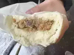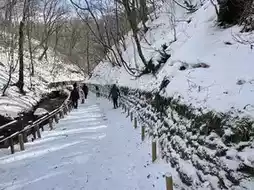 Walk along the snow path🥾, the stream is gurgling, and the air is fresh. When you are tired, have a hot fried black wheel🍢, which is crispy on the outside and chewy on the inside, and then take a bite of the fragrant meat bun🥯, and you will be surrounded by happiness in an instant.