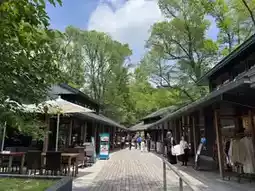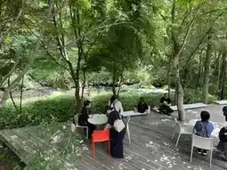 Nestled in the forest, Harunire Terrace is a charming wooden village that serves as the shopping street for Karuizawa Hoshino Onsen. It is conveniently connected to the hot spring area and is located next to a refreshing stream, making it an exceptionally cool and comfortable spot.